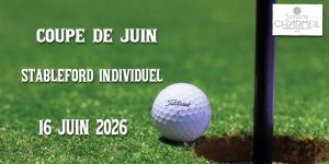 Coupe de Juin 16 juin 2026 Coupe de juin Stableford individuel Fiche d'inscription Droits de Jeu : 10€ (adhérents) – 15€ (extérieurs) Départs – Départs alpha Résultats net et brut iCal Google Voir le calendrier complet